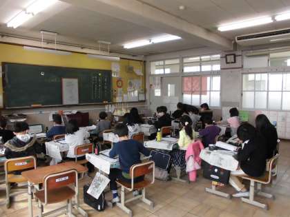今日の書写の時間は,小筆を使って学年・自分の名前を書く練習をしました。初めての小筆,まだまだ慣れていないので,思い通りに書けません。しかし,少しずつ力の入れ具合や手首の動きのコツをつかんできたようでした。