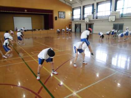 体育の学習では,跳び箱の練習が始まりました。久し振りの跳び箱でしたので,まず初めに,馬跳びの練習をしました。2人組などをつくって,体重の移動や踏切りのタイミング,手のつき方などを確認しながら,馬跳びの練習をするとてても上手に跳ぶことができてきました。跳び箱の運動に生かすことができるかと思います。