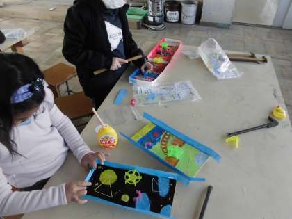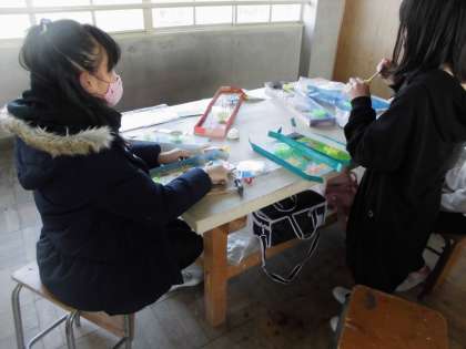 今日は,二組は図工の「くぎうちトントン」の仕上げを図工室でしました。明日の図工展に向けて,それぞれ頑張って作品を仕上げました。