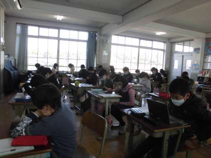 ステップタイムには,一人一台のタブレットを使って,算数の学習ができるソフトに取り組んでいます。キュビナというソフトでは,個別に問題が出題されるので,苦手な問題を繰り返し行うことができたり,詳しい解説を見たりすることもできます。子どもたちは,次々に問題を解いていき,正解の音が鳴ると嬉しそうです。タブレットの扱い方にも慣れてきました。