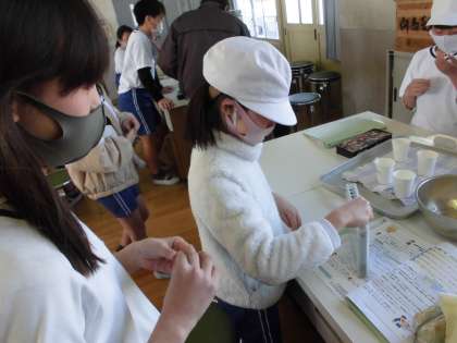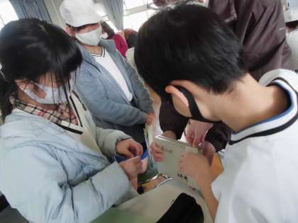 花,鳥,風,月,客と書かれた5つの札を持ち,自分が思う札を投札箱に入れていきます。