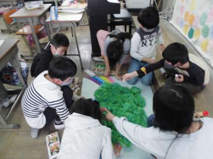 6年生への卒業「おめでとう」と書かれた作品を作りました。