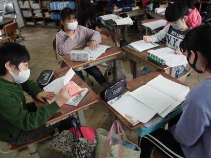 などのチェック事項を参考に,読み合ってペンでアドバイスを入れたり,良かったところを伝えたりしました。