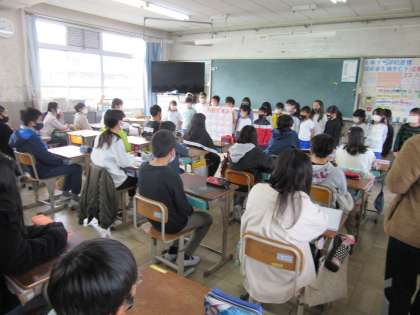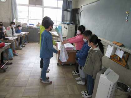 今日の朝の会に,2,3年生から卒業お祝いメッセージを受け取りました。