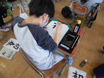落ち着いてゆっくり書くことを意識して習字の学習をしました。いつも以上に静かな教室の中で集中して取り組む姿が見られました。