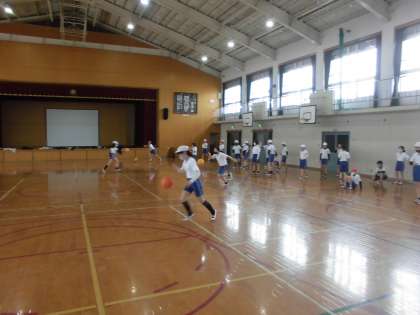 バスケットの基本は,パス・ドリブル・シュートです。今日は,班ごとにパスの練習やドリブルの練習,そして,シュートの練習などをしました。久し振りのボール運動でしたので,みんな楽しそうにバスケットをしていました。