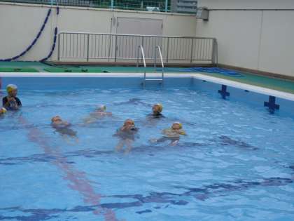 夏休み最後のプールは,着衣泳をしました。服を着て泳ぐのは,いつもと違ってたいへん重くて泳ぎにくく,とても勉強になったようでした。もしものときに備えて,ペットボトルの浮力を使って,浮くということも知りました。