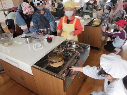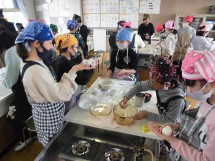 炊きあがったご飯は,ごま塩・ゆかり・菜飯のふりかけをかけて,小さなおにぎりにして食べました。給食を食べた後でしたが,自分たちで作ったおにぎりは,特別においしかったようで,あっという間にペロリと食べてしまっていました。大満足の笑顔が見れてよかったです。