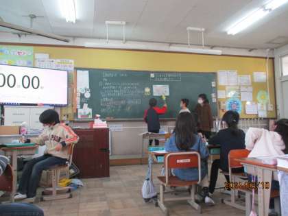 今日の算数はグループでの話し合いで問題を解決しました。一人ではわからない問題もグループの子たちに教えてもらいながら,また解決しながら一つの答えを出すことができました。発表も指し棒を使ってしっかりとできました。