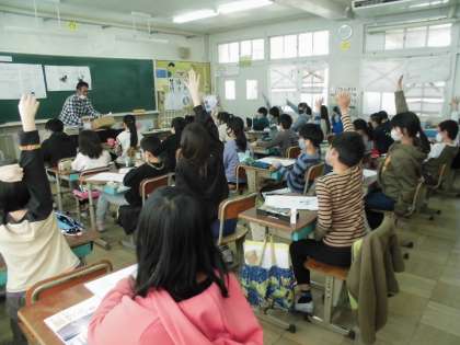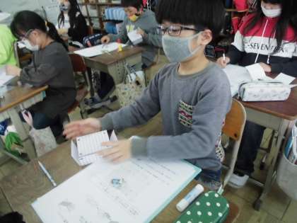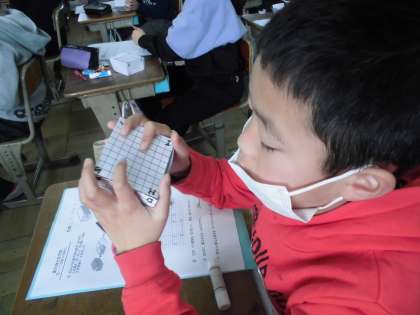 展開図を切って直方体にし,重なる辺や頂点を調べました。