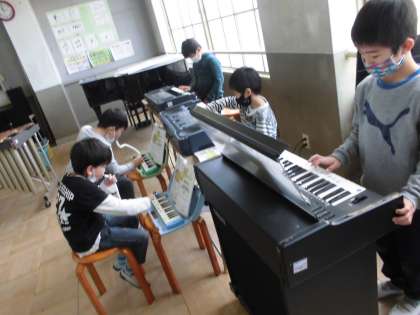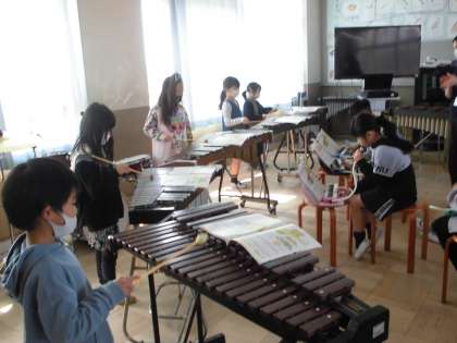 合奏の練習をしています。 それぞれのパートに分かれて練習しました。 次の音楽ではみんなで合わせていきます。