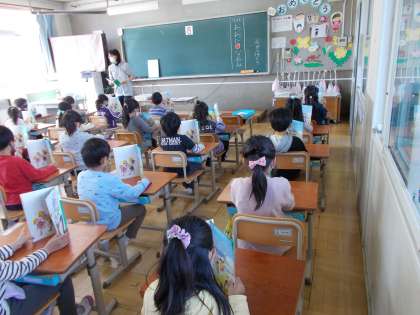いよいよ。国語の一番初めのページの詩を音読しました。音読の正しい姿勢を確認して,みんなで声をそろえて読みました。ぞうさんの声で,アリさんの声で,カタツムリさんのようにゆっくりと…子どもたちが飽きないように色んなパターンで楽しみながら読み進めていきました。