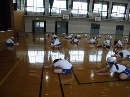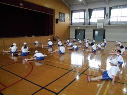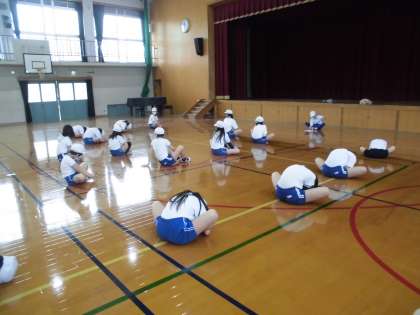今日から準備運動やストレッチを体育係さんにバトンタッチしました。