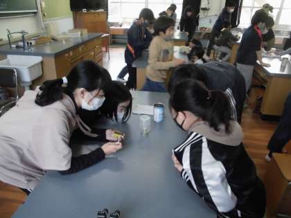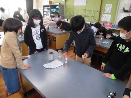 アルコールランプのふたをするとなぜ火がきえるのだろう?という疑問から,ものが燃えるために必要な条件について実験を通して考えています。マッチを使うことにもだいぶ慣れてきたようです。安全に実験を継続していきたいです。