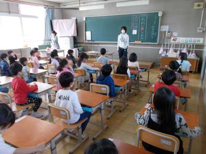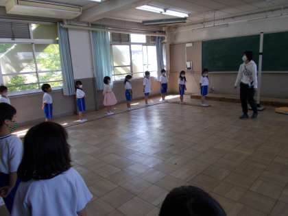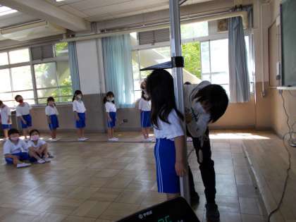 初めての身体測定,保健室の先生のお話をよく聞いてスムーズに行うことができました。適切な距離をとって測定を行いました。