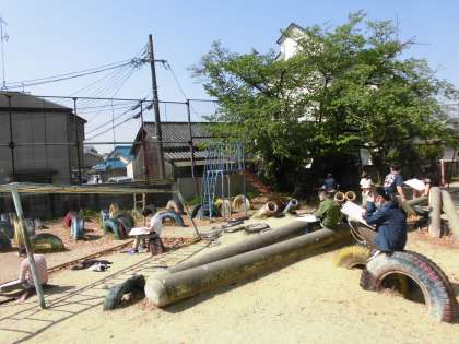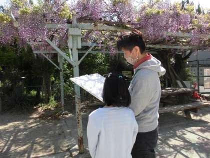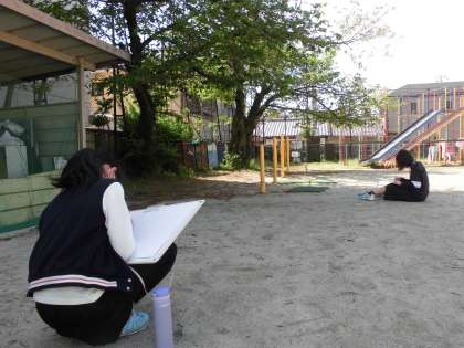校庭の遊具や木,滝など一つメインを決めて,スケッチです。