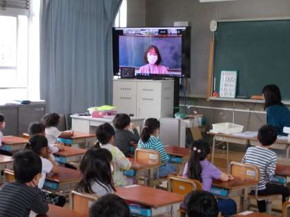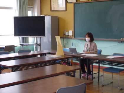 5月の朝会は全校初の試みでZOOMで行いました。