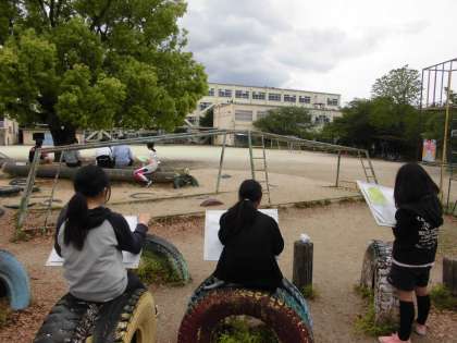 私のお気に入りの風景を丁寧に画用紙に描いています。画板をもって実際にスケッチをすることで,構図の工夫をしたり細かいところまでじっくりと見て描いたりすることができています。作品の完成に向けて,絵の具を使って丁寧に色を塗っていきたいです。
