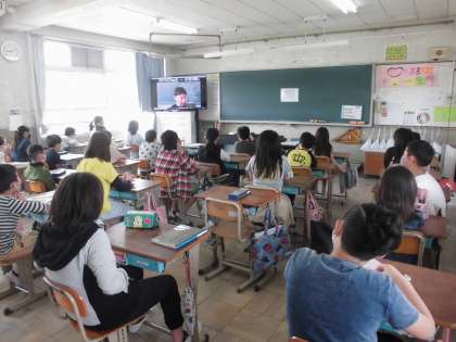 新型コロナウイルス感染拡大防止のため,5月の朝会をZOOMで行いました。事前にうまくつながるかテストをしていたので,当日は,スムーズに実施することができました。その時,子どもたちに話した内容は以下の通りです。今後も,ICTを活用した取組が進化していくことでしょう。