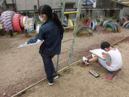 奇跡的に雨があがったので外へ出てスケッチの続きをしました。