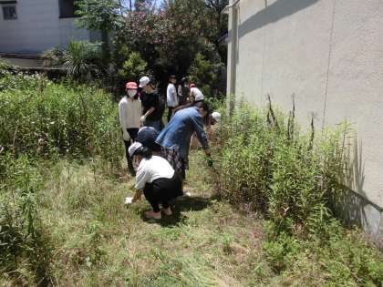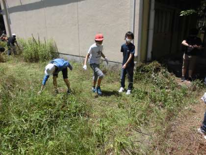 5月31日(月)に,校内清掃「ゴミ0の取組」がありました。暑い中でしたが,全校児童で校庭などの草抜きを行いました。6年生の担当の場所は,理科室周りということで,普段人の通りが少ない場所でしたので,たくさんの草が生い茂っていました。少しずつ草が少なくなっていくのを楽しみにしながら,みんなで力を合わせがんばりました。