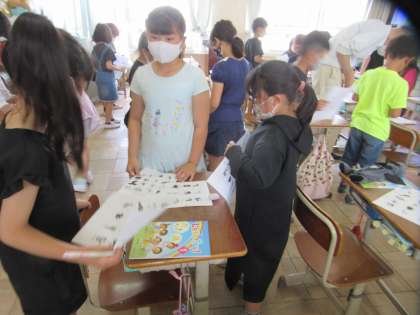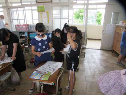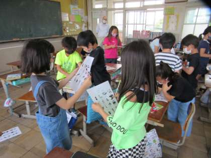 外国語での交流で,すきなものを英語でたずねました。ビンゴになるワークシートを使い,楽しく学ぶことができました。