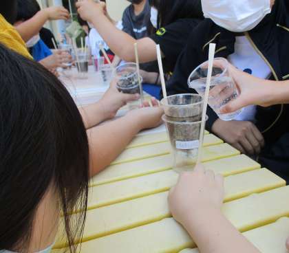 つまり水は,土や砂の粒が小さいほどしみこむのが遅くなることが分かりました。