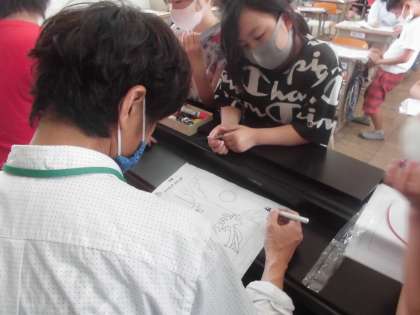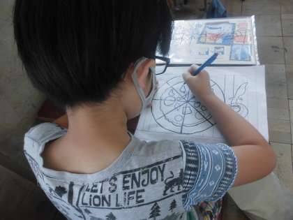 今日はアイデアスケッチをし,カーボン紙で板に写しとり,早くできた人は電動のこぎりで切りました。