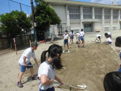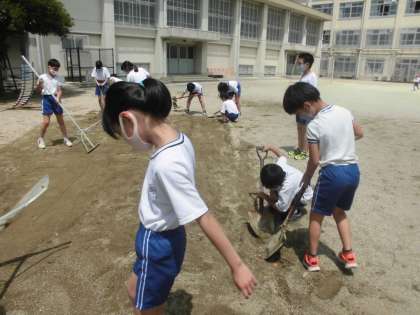 走りはばとびの準備 公開日 2021/06/15 更新日 2021/06/15 5年生の部屋 今日から体育は走りはばとびに取り組みます。 朝休みと中間休み,砂場の安全を確保するための準備を手伝ってくれました。 うもれた砂場の木枠を見つけ,カチコチの砂場を掘り,トンボで土をならしています。 たくさん手伝ってくれました。ありがとう。