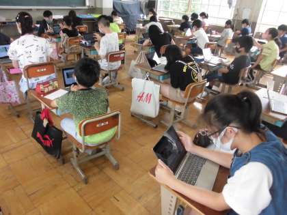 掃除時間の後の15分間のステップタイムでは,タブレットを使って算数の個別学習ソフト「キュビナ」で学習しています。子どもたちは,タブレットを使っての学習スタイルにも慣れてきたようで,次々に問題を解いていく姿が見られます。数字の入力や図形の操作などが難しいようですが,試行錯誤をしながら頑張っています。