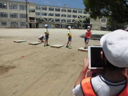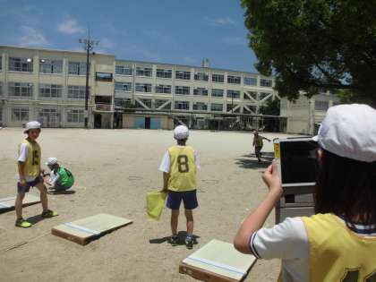 自分のとんでいる様子をグループの人に撮影してもらい,チェック。