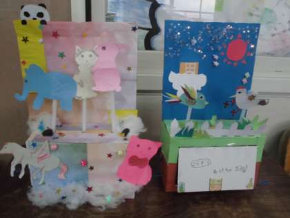 クランクを使った作品が完成してきました。全員の作品を紹介できませんが,素敵な作品がたくさんできました。