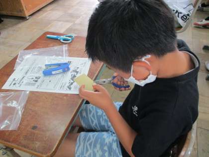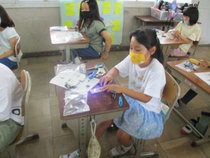 モノづくり体験の様子です。LEDを使って電子工作に取り組みました。自分の力で諦めずに全員が工作を完成させることができました。