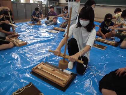 古代体験4 公開日 2021/07/07 更新日 2021/07/07 6年生の部屋 火起こし体験では,上下に木を動かしながら,こまのように軸を回転させ,摩擦の熱を使って火をおこしました。しばらくするとコツをつかんで,リズムよく回転をすることができるようになりました。