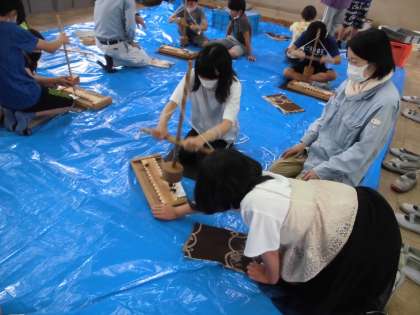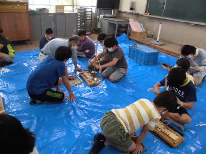 子どもたちは,縄文時代や弥生時代などの人々のくらしの様子を想像し,今までの社会の歴史で学習したことを生かしながら,実際に摩擦の熱での火の起こしかたを体験させてもらいました。上手にできたグループでは,焦げたようなにおいがしてきたり,白い煙が出てきたりしていました。また,火種ができて火をつけることができたグループもありました。火おこしの大変さも体験でき,大喜びでした。