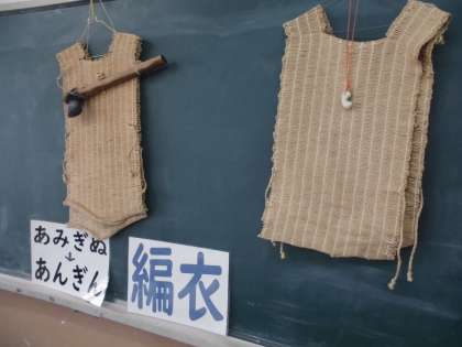 古代体験7 公開日 2021/07/07 更新日 2021/07/07 6年生の部屋 「あんぎん編み」という,衣服などの編み物の作り方を体験しました。編み方は,横糸と縦糸を規則的に編んでいく方法です。向かいの人の技術や生活の知恵を感じることができたことと思います。