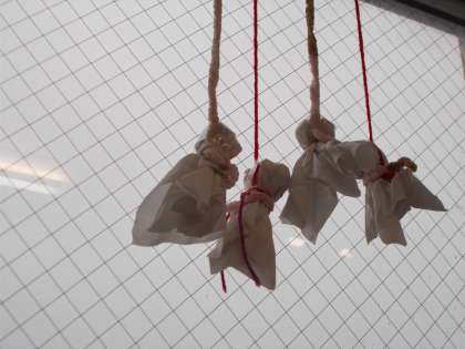 雨が降るとプールに入れないので,金曜日は雨が降りませんようにと願って,てるてる坊主を作りました。