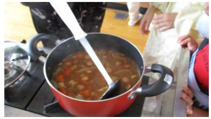 今回は「カレー」。材料を包丁で切りましたが,みんな最後まで集中していました。