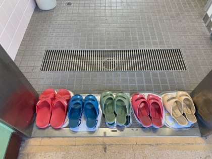 緊急事態宣言が明けてから,教育委員会の先生方が,学校訪問され,学校の様子を見てアドバイスをしてくださっています。その中で,ぜひ,褒めてあげて欲しいと言っていただいたことを伝えます。「どのトイレを見てもはきものがそろっていた。これはすごいことですよ。誰がそろえているのですか?」「子どもです。もちろん,教職員もしています。」どのトイレを見てもほぼ,スリッパがきれいに並んでいました。保健・美化委員会の児童が作った足型等の効果もあるのでしょう。校内を見回っていると,4月から今まで全ての学年のトイレの入口で,スリッパをきれいに並べている子どもの後ろ姿を見ました。クラスで指導を受けていてもその瞬間は,誰に言われたのでもなく,実行できているのです。自分がはいたスリッパだけを並べていたのではありません。他のスリッパも整えていました。もう習慣になっているのです。これは,本当に素晴らしいことです。