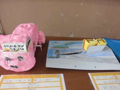 夏休みの自由作品には,動くおもちゃ・貯金箱・木工工作・アロマキャンドル,小物づくり・マスコット・布製品など,色々な種類の作品が出来上がりました。きっと何をつくろうか考えながら,アイデアを膨らませてがんばったことと思います。楽しい作品がたくさん並びました。