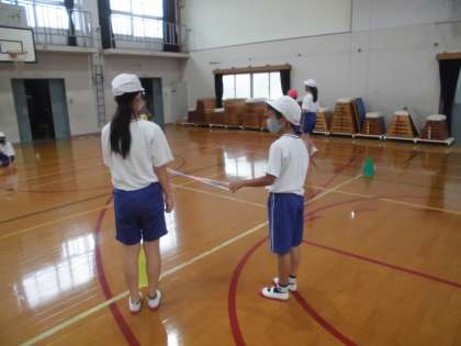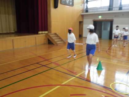体育兼総合で,ガイドランナーを体験しました。