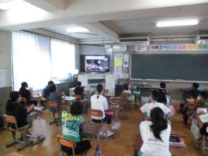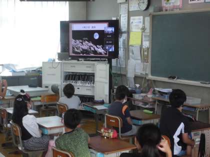 全校朝会として,ZOOMを使って各教室で校長先生のお話を聞きました。校長先生からは,9月21日の中秋の名月に関わるお話をしていただきました。また,向島小学校のすぐそばにある宇治川にかかる「観月橋」のお話や「指月山 月橋院」のお話もしていただきました。今年は,中秋の名月の日にお月見ができるか楽しみですね。