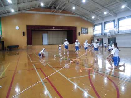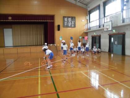 といっても体育館なので全力では走れないので,今日のめあてはリズムを思い出すことと,ハードルをその人に合った間隔に並べ替えることに慣れることです。