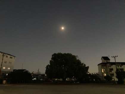 理科の学習では,「月と太陽」の学習をしています。先日,上弦の月や月の満ち欠けの学習もしました。写真は,9月15日の6時半ごろの南の空の写真です。きれいな半月がありました。また,今年の中秋の名月は9月21日(火)です。満月の動きや月の様子の観察では,午後6時頃から8時頃の間,天候が良ければ,満月は東の空から南の空にかけて見えるはずですので,月の位置や動きを記録してほしいと思っています。