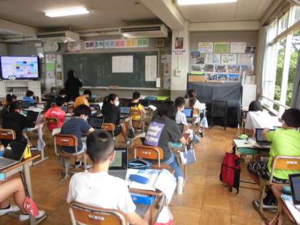 「やまなし」の物語は,5月と12月の谷川の底の2枚の青い幻灯という設定になっています。子どもたちは,本文から谷川の様子を想像し絵や図に表しました。また,「クラムボンは何だろう?」ということを話し合いました。子どもたちの考えで多かったのは,泡(カニの出した泡・魚の出した泡・つぶつぶの泡)という考えでした。また,プランクトンという考えや魚の食べるエサ,生き物などの考えもありました。クラムボンの言葉や宮沢賢治さんがこの作品にこめた思いについても考えていきたいです。