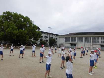 10月6日(水)の体育発表会に向けて,全校ダンスの練習を運動場でしました。今年の曲は,YOASOBIの「夜を駆ける」です。速いテンポの曲ですが,子どもたちはリズムカルに楽しそうに踊っています。子どもたちのかっこいいダンスにご期待ください。