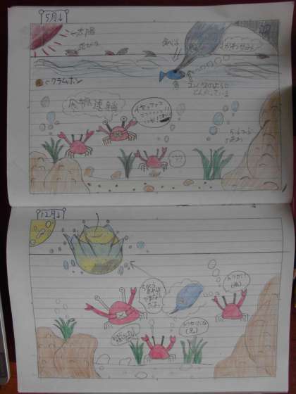 5月と12月の二つの場面には,どのような風景が描かれているのかを物語の文章から想像しながらまとめました。宮沢賢治の独特な表現が多く用いられていることにも気が付いたようです。