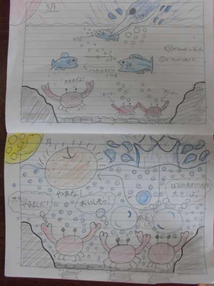 どちらの場面にも色を表す表現や情景をイメージすることができる表現が多く書かれています。例えば,「日光の黄金は,夢のように水の中に降っていきました。」という文や「ラムネのびんの月光がいっぱいにすき通り,天井では,波が青白い火を燃やしたり消したりしているよう。」などといった比喩表現にも着目して読み深めていきたいです。