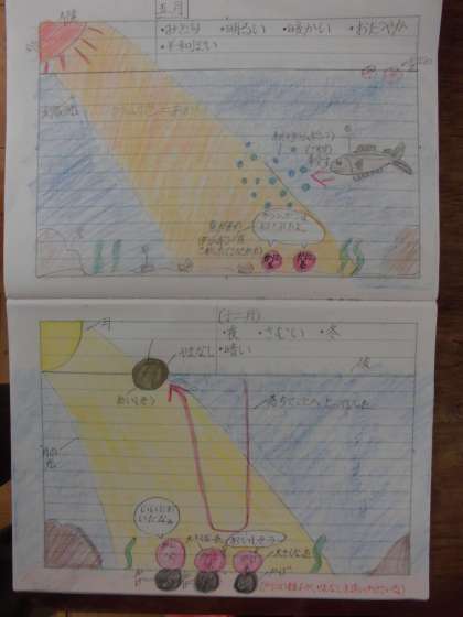 二つの場面で構成されている場面の様子をかにの会話や様子,水の光の様子,上から来たもの,出来事とかにの感じ方などに着目し比較しながら,作者がこの作品に込めた思いについて考えていきたいと思います。