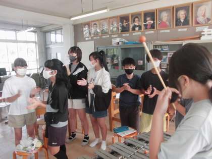 音楽 クラッピングファンタジー 公開日 2021/10/07 更新日 2021/10/07 6年生の部屋 拍手1,拍手2,楽器の3つに分かれてグループごとに練習しています。 自分のパートの音,相手のパートの音を聴き,一つのものを作り上げていく。 そこには,人と人の関わりにもつながるものがあります。